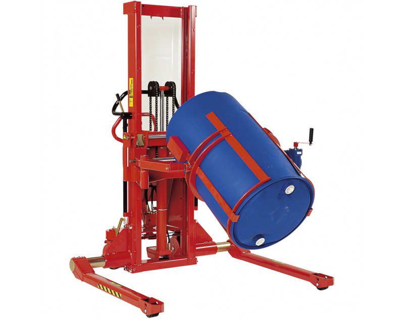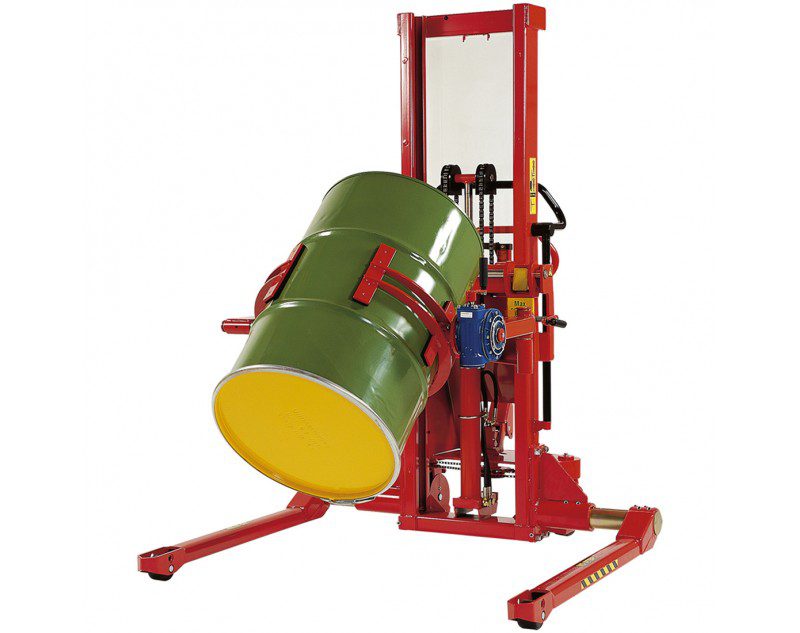 The drum turner has a capacity of 250 kg. The turning angle of 360º makes it possible to empty a drum.