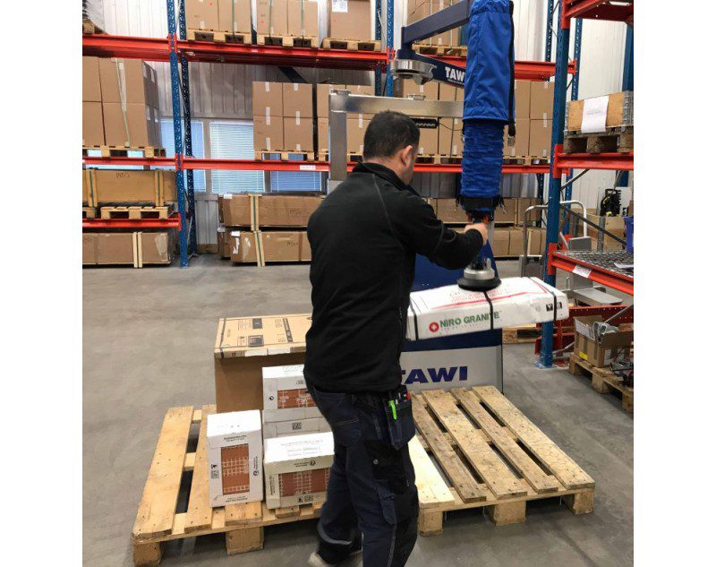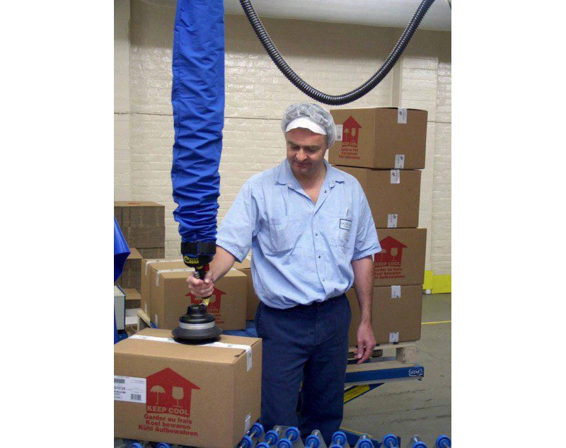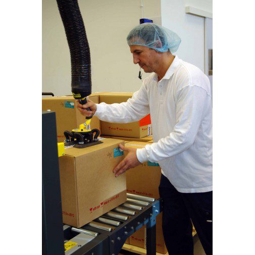 With TAWI VacuCobra you can grip and lift quick and easy with just one hand. The suction foot can hold most types of packaged goods.