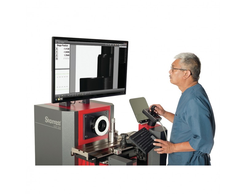 The HDV500 Digital Video Comparator offers the best features of a large horizontal optical comparator and a vision metrology system. Configured like a traditional horizontal comparator, the HDV500 has a long travel X-Y stage and heavy-duty steel construction. The work stage is the same as the popular HF600 and HF750 comparators, with a 330lb (150kg) load capacity. Much like the HDV300 and 400, the heart of the system centers on a uniquely designed interchangeable lens mounting system coupled to a hi-resolution color digital video camera (patent pending). The system is available with a choice of three telecentric lenses. The HDV systems house a powerful 64-bit PC, which runs MetLogix M3 Metrology software. With this software, DXF CAD files can be imported and 2D Go-No-Go “profile gages” can be developed directly from the CAD files. Video-Edge-Detection (VED), allows real-time interaction of the imported file with the video image of the part being inspected.
